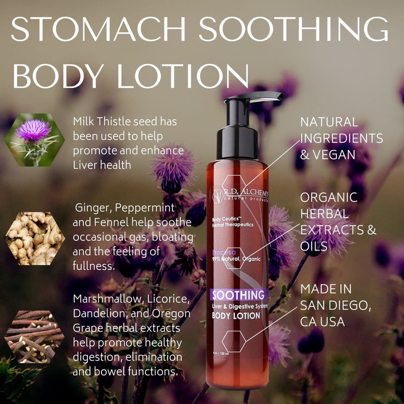 RD Alchemy - Stomach Soothing Lotion for Bloating, Gas, & Nausea - Extracts of Milk Thistle, Chamomile, & Licorice Soothe & Ease Symptoms for Improved Digestion & Stomach Relief.