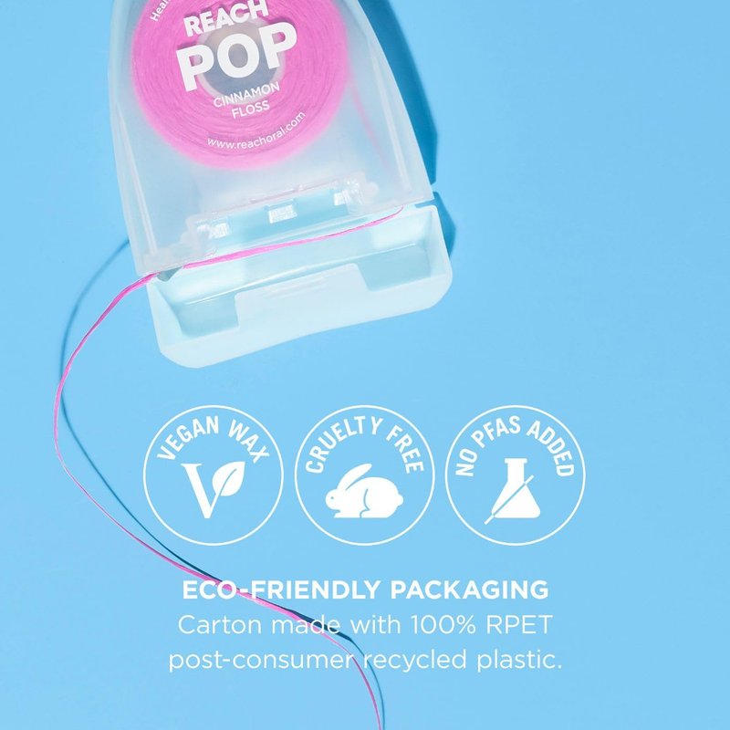 - Sustainable Packaging: Reach POP Dental Floss is sustainable & packaged in a Post-Consumer Recycled(PCR) plastic for the container.