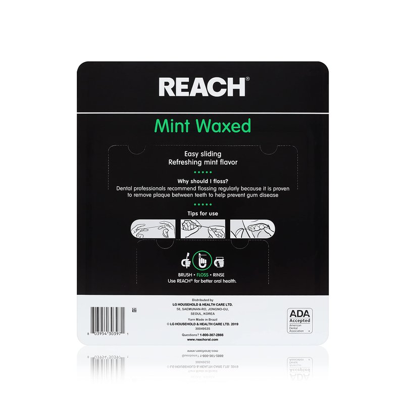 - Extra-wide Cleansing Surface: Dental floss from Reach is specifically effective in cleaning between wide spaced teeth thanks to its extra-wide cleaning surface