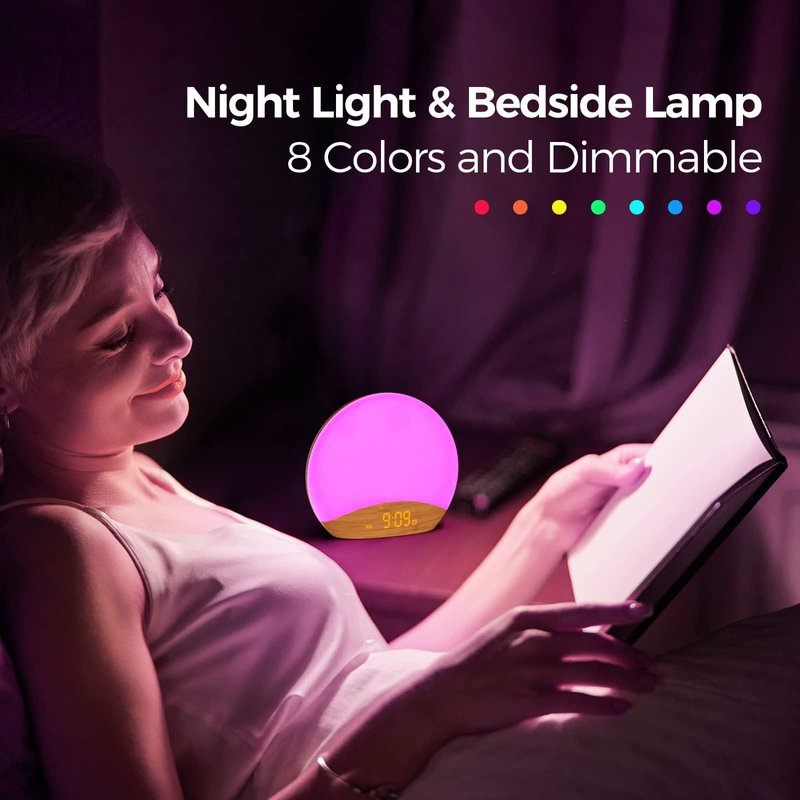 - 【0-100% Dimmable Clock & Night Light】With a full-range display dimmer, get your personal comfort clock brightness without disturbing your sleep at night. 8 different colors of the nightlight with adjustable brightness. Soft light for reading, no eye strain for kids and adults.