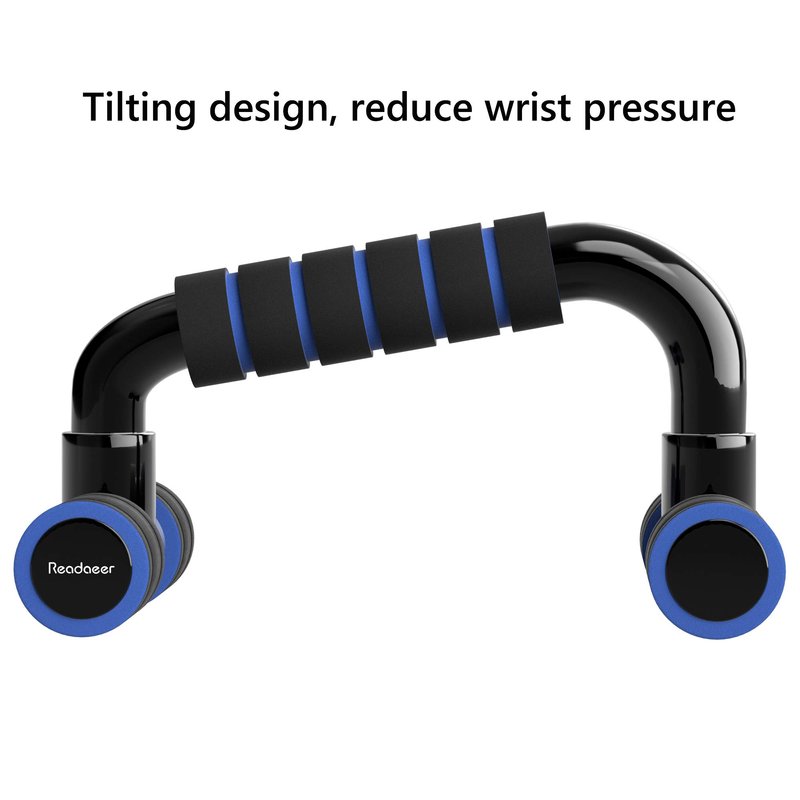 Readaeer Push Up Bars Gym Exercise Equipment Fitness 1 Pair Pushup Handles with Cushioned Foam Grip and Non-Slip Sturdy Structure Push Up Bar for Men & Women (Blue)