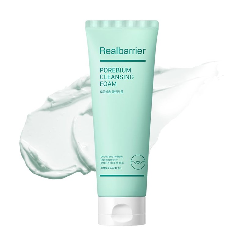 Real Barrier Porebium Cleansing Foam,150ml,5.07 Fl Oz, Rich Dense Bubble Cleanser & Exfoliator for Sensitive Skin, Sebum Oil Control with Ceramide, Impurities Dead Skin Cells Remover, Korean Skincare