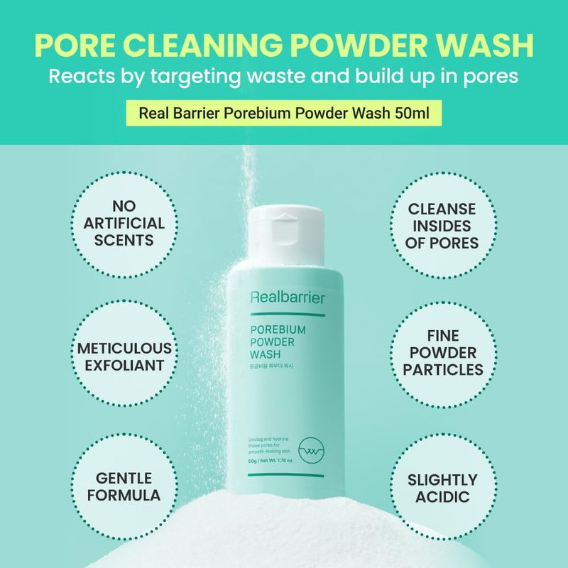 Real Barrier Porebium Powder Wash,50ml,1.76 Fl Oz, Micro-Powder Particles Facial Cleanser, Exfoliator for Sensitive Skin, Impurities, Dead Skin Cells Ceramide Solution, Deep Cleansing, Korean Skincare