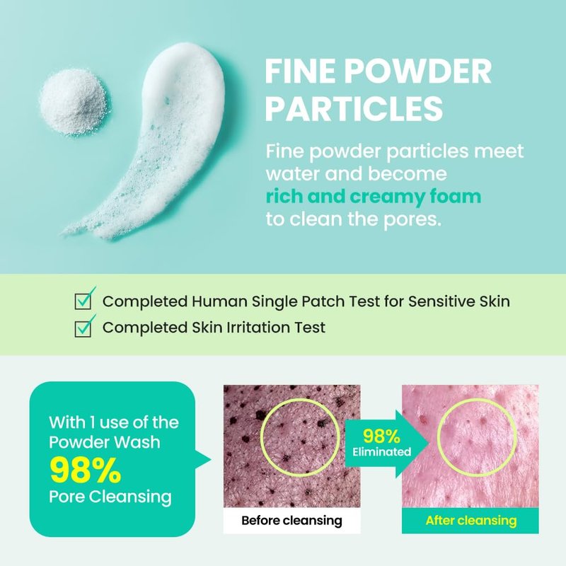 - KOREAN SKINCARE SOLUTION: Travel-Friendly pore cleansing powder wash removes dead skin cells and sebum without irritating skin. It soothes and moisturizes dry skin, strengthens the skin barrier of sensitive skin, and cleanses pores all at once!