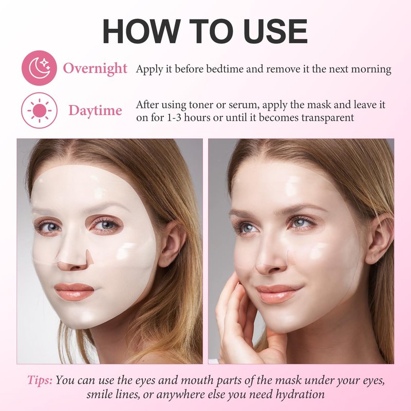 - 【Overnight Face Mask】 After 3-4 hours, the collagen hydrogel sheet mask is absorbed into the skin and becomes transparent. This mask can be used as an overnight mask to provide relaxing elasticity care while you sleep. It does not leave any essence residue, you can sleep without worrying about any mess.