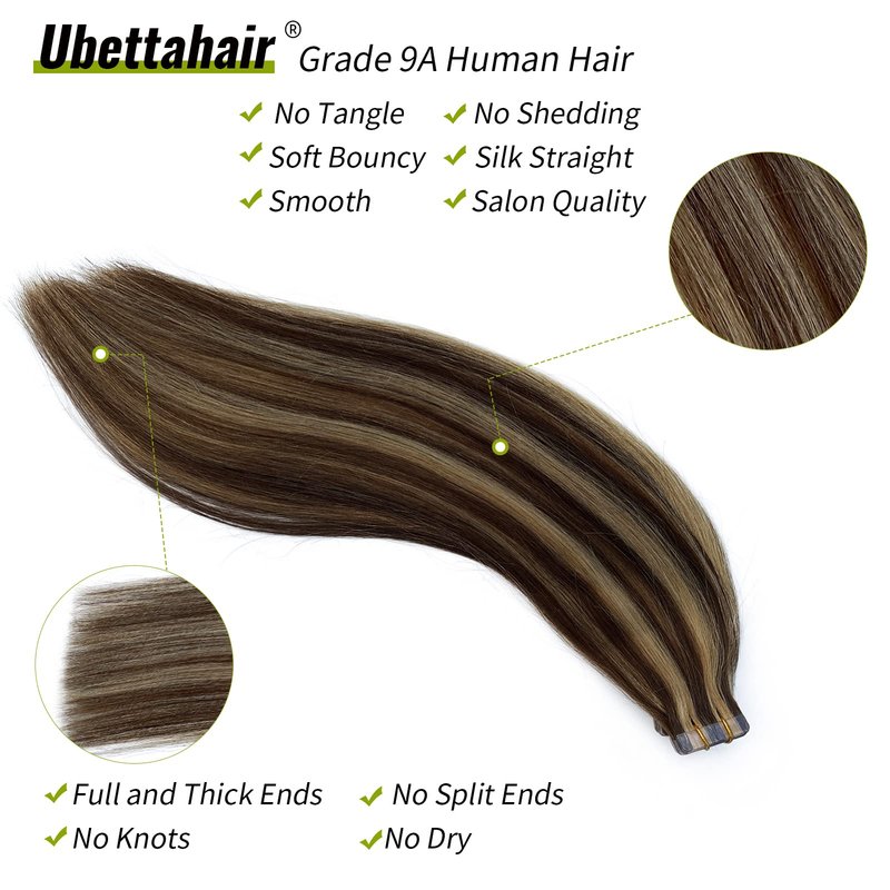 Ubetta hair extensions is of good quality in inexpensive price,the tape in hair extensions can be naturally blended with your own hair and can be washed,blow dried, flat ironed,or curled by using hot tools,just like your own hair, no shedding,no tangles,no smell,silky soft.If you want to add length or volume to your hair,tape in hair extensions real human hair is a perfect choice.
