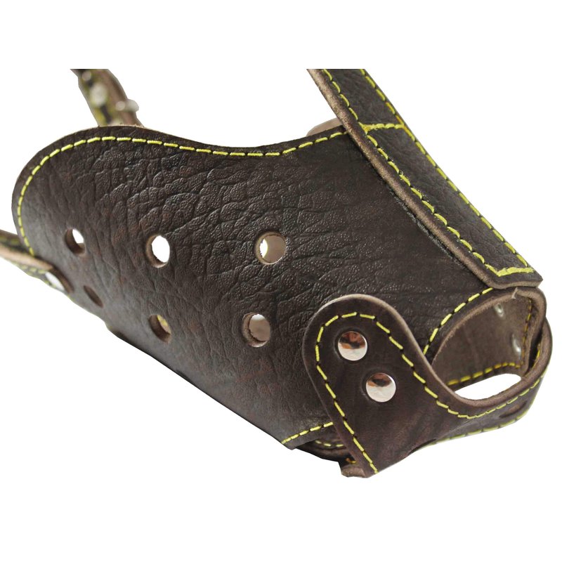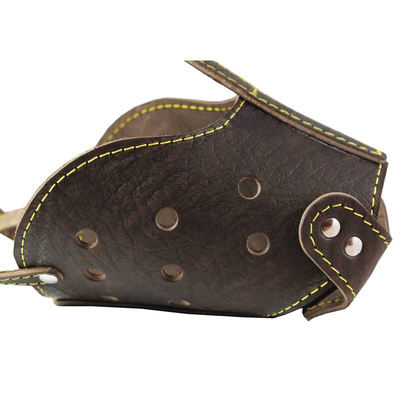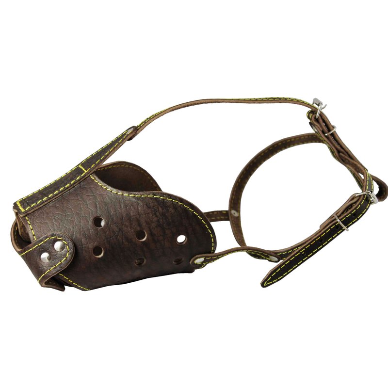 - Well-fitting, comfortable muzzle is made of high quality genuine leather, trimmed and riveted for extra strength.