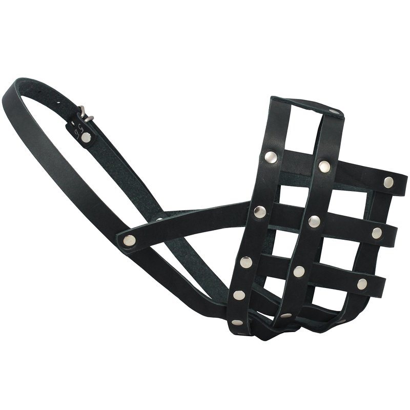 - Well-fitting, comfortable muzzle is made of high quality genuine leather, trimmed and riveted for extra strength.