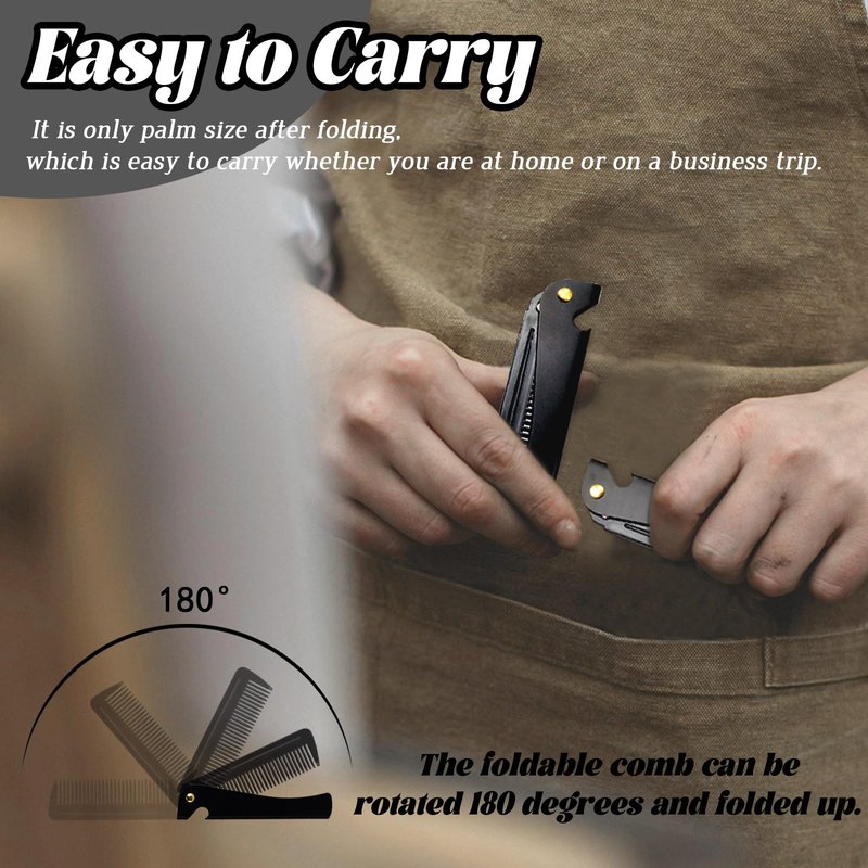 - 【Folding and Sturdy】The folding design and stainless steel handle make the pocket comb last longer, which is very suitable for combing beards and hair. At the same time, the folding comb can also be used as a bottle opener.