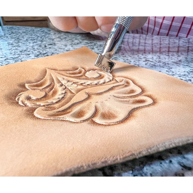- The set includes 10 stamping tools; the lifter, small bar grounder, mulesfoot, small flowers center, 2 bevelers, veiner, center shader, 2 thumb prints (vertical lines), pattern with tool guide and a downloadable Chan Geer instructional video