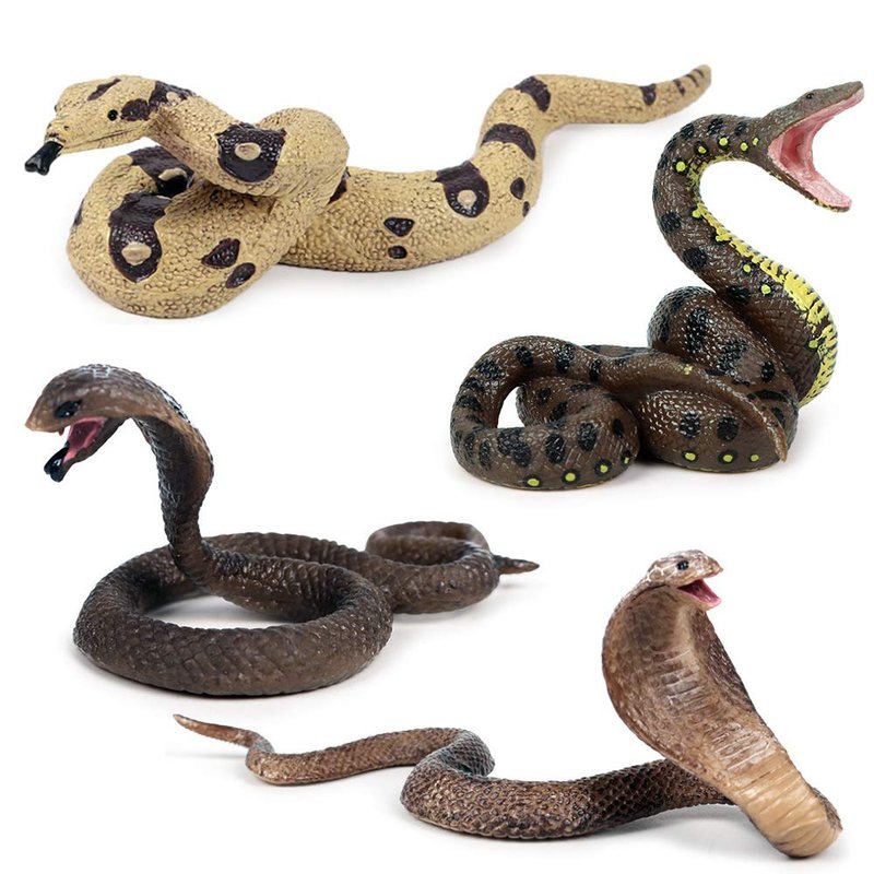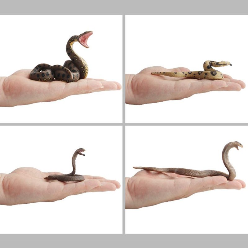 Realistic Wild Life Jungle Animal Action Figures Model Playset Fake Snake Model Party Favors Supplies Cake Toppers Set Toys for Boys Girls Kid (4 PCS)