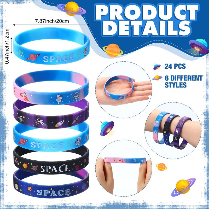 - Sufficient Quantity: this outer space party favors includes 24 pieces of galaxy slap bracelets and 24 pieces of galaxy silicone wristbands; Convenient for you to provide and share enough party accessories for your family and friends, leaving romantic memories together