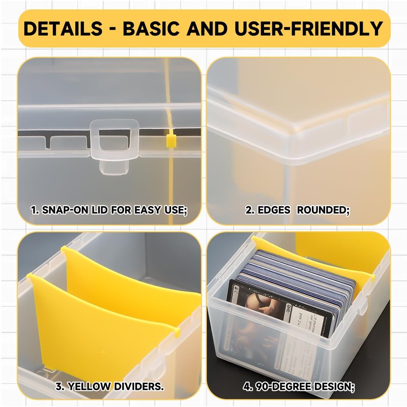 - Simple and Practical: Each card box comes with 2 yellow hard card dividers that can be removed or adjusted as needed. The bottom of the box features dedicated divider slots to secure the dividers in place, ensuring your cards remain stable when properly inserted.