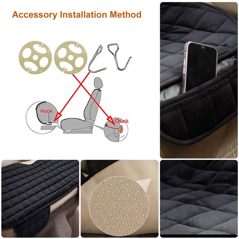 - Unique Front Pocket Design: And there's a front pocket attached to the mat for seat in your car, you can put anything you need into the pocket, mobile phone, cards, driver's license, wallet, documents, and more. that are great for adding a bit of extra storage. The exquisite appearance makes it a unique decoration for your car interior. That you can as a gift for your friends and families.