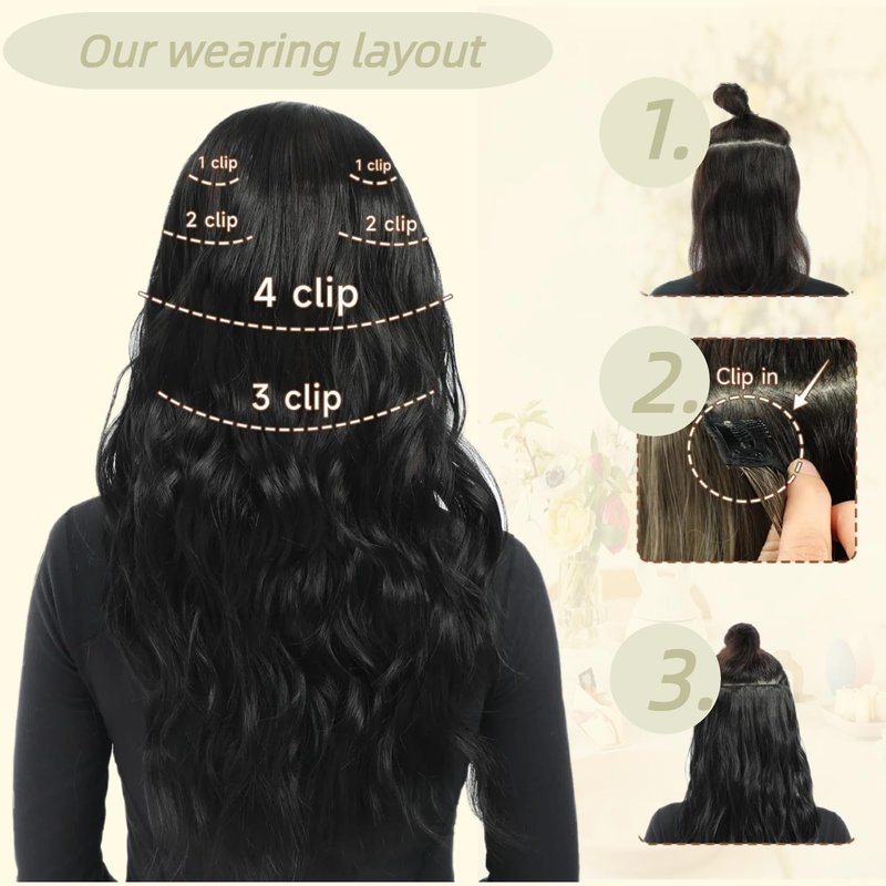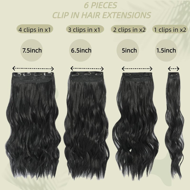 - 【Easy to Wear and Put Off】:This wavy curly Clip In Hair Extensions is friendly for the users, easy to apply on your hair by snapping the clips in, no need go to the expensive hair salon, no need external help, you can decide how many pieces to apply among 6 pcs according to your hair volume, reshape or trim according to your hair lenngth and style.