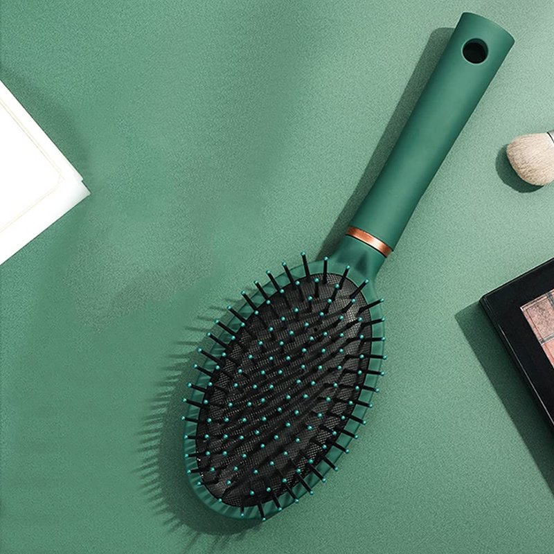 Reazana Detangling Brush Anti-Static Detangler Hair Brushes with Silicone Cushion Base Blow Drying Comb Nylon Bristle Pins Fashion Massage Brush Wet or Dry All Hair Types Styling Dark Green (Oval)
