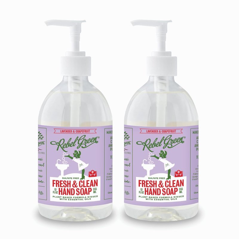 Rebel Green Liquid Hand Soap - Moisturizing Natural Bathroom & Kitchen Liquid Soap - Gentle Household Hand Wash - Lavender & Grapefruit, 12 Fl Oz (Pack of 2)