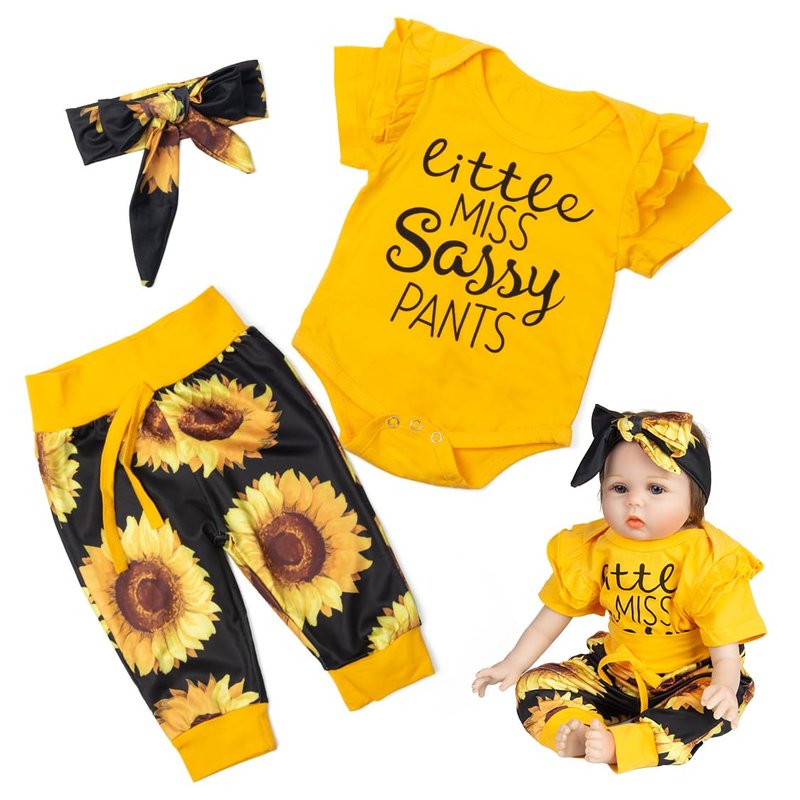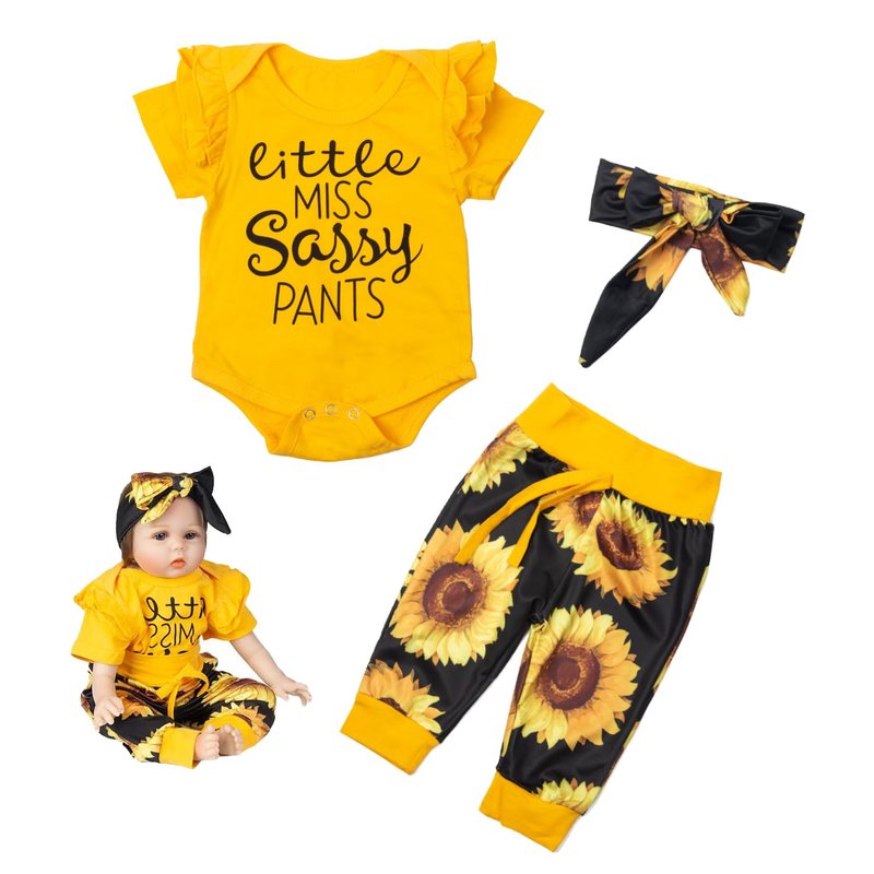 Reborn Baby Dolls Clothes for 17-22 inch Reborn Dolls Bright Yellow Sunflower Baby Doll Clothes Set Newborn Doll Girl and Boy 3 Pieces of Pack