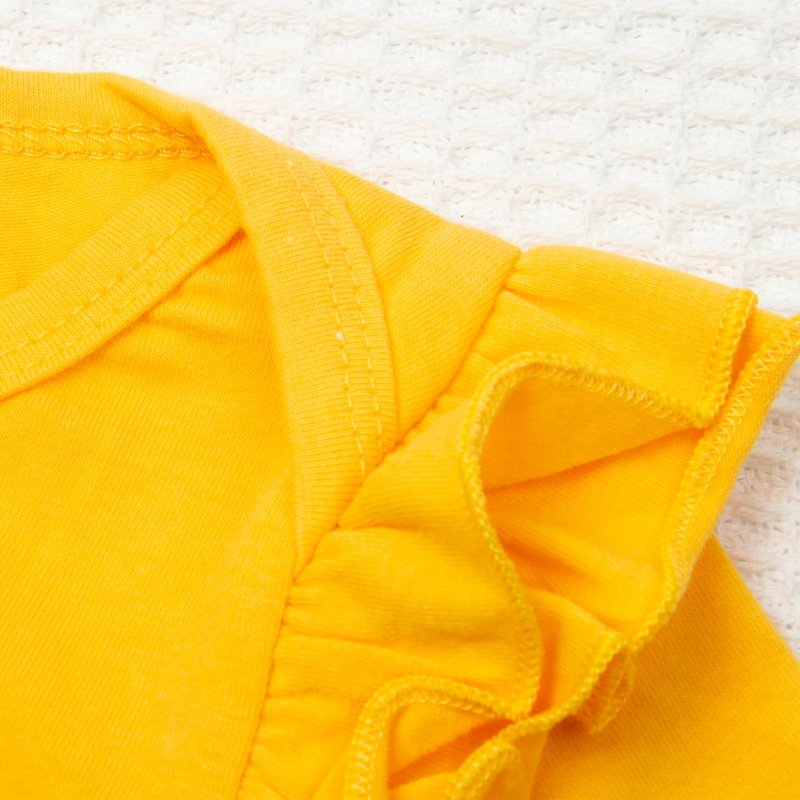 When you open the package,you will receive yellow romper*1, a matching headband,a pair of printed pants.