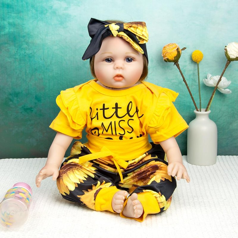 - Reborn baby doll clothes set with yellow sunflower design, suitable for 17-22 inches reborn dolls, both girl and boy.
