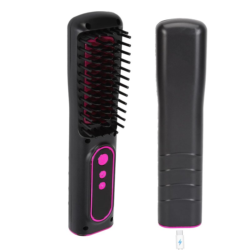 - [PORTABLE]: Easy from the constraints of cords, this mini straightening brush offers portability and easy usage anywhere, anytime. Its compact size and design provide unprecedented convenience in hair styling.