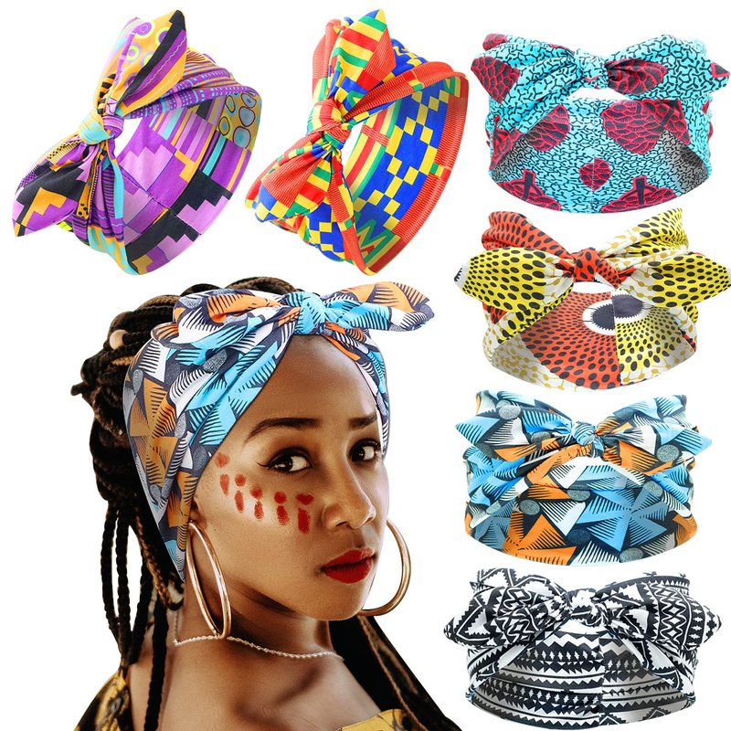 RechicGu 6 Pieces African Turban Headband For Women Ankara Print Bonnet Beanie Cap Pre-Tied Bow Bowknot Headwrap Stretchy Dreadlocks Locs India Yoga Workout Hair Bandana
