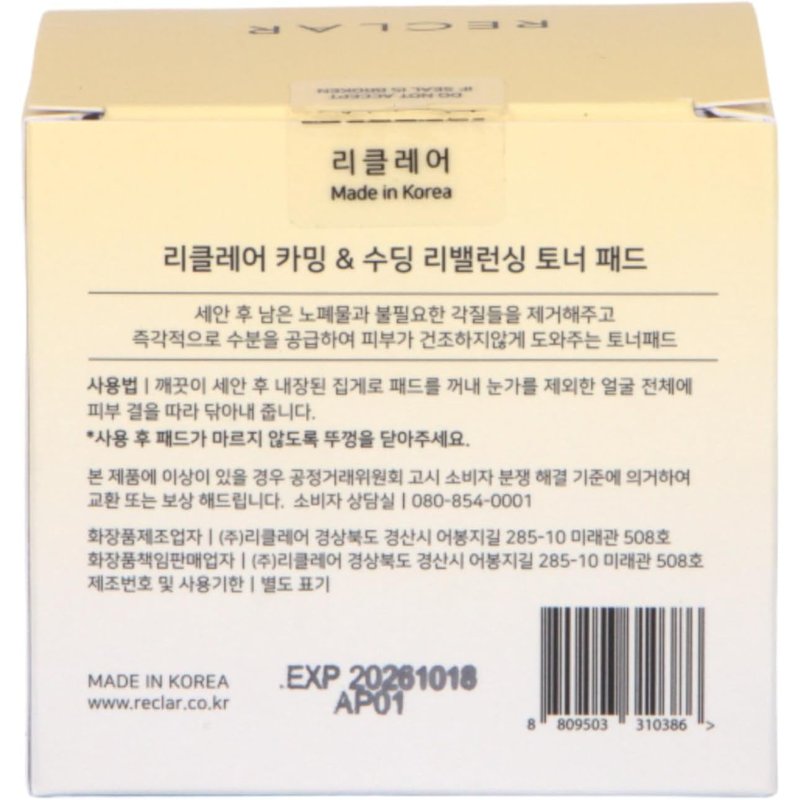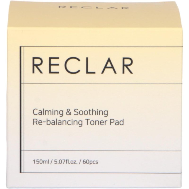 Reclar Calming & Soothing Re-Balancing Toner Pad 150ml, 60 Count, Korean Skincare, Exfoliating, Aloe, Hydrating