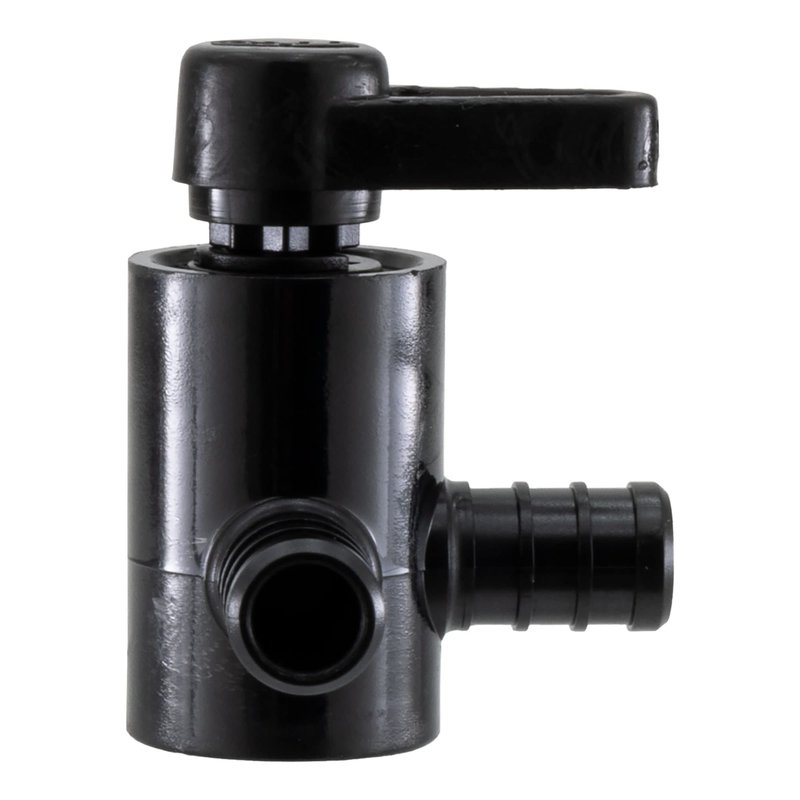 This three-way valve features three ½” barbed connections. The direction the switch points in when the valve is “open” is a constant connection, meaning it always has water flow and functions as a source of water flow for the other two connections. The other two connections are variable connections that allow you to redirect the flow of water from the constant connection.