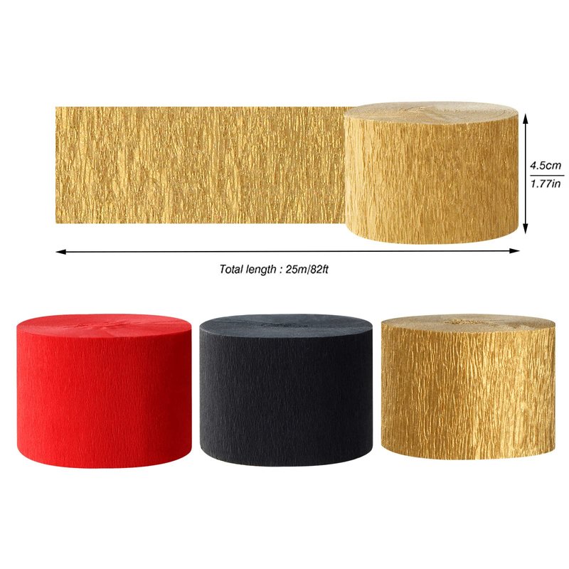 - 【Bright color】 Our crepe paper is available in 3colors, 3 rolls per color: red black gold.There is plenty of each color to really get creative and have some fun.