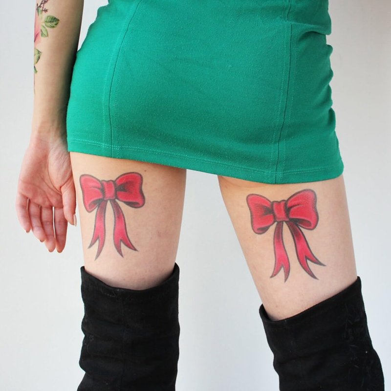 Red Bow Tie Tattoo (Set of 2) - Bow Tie Temporary Tattoo/Bow Tie Thigh Tattoo