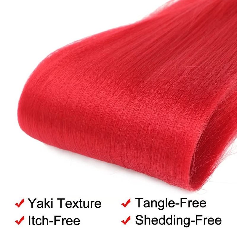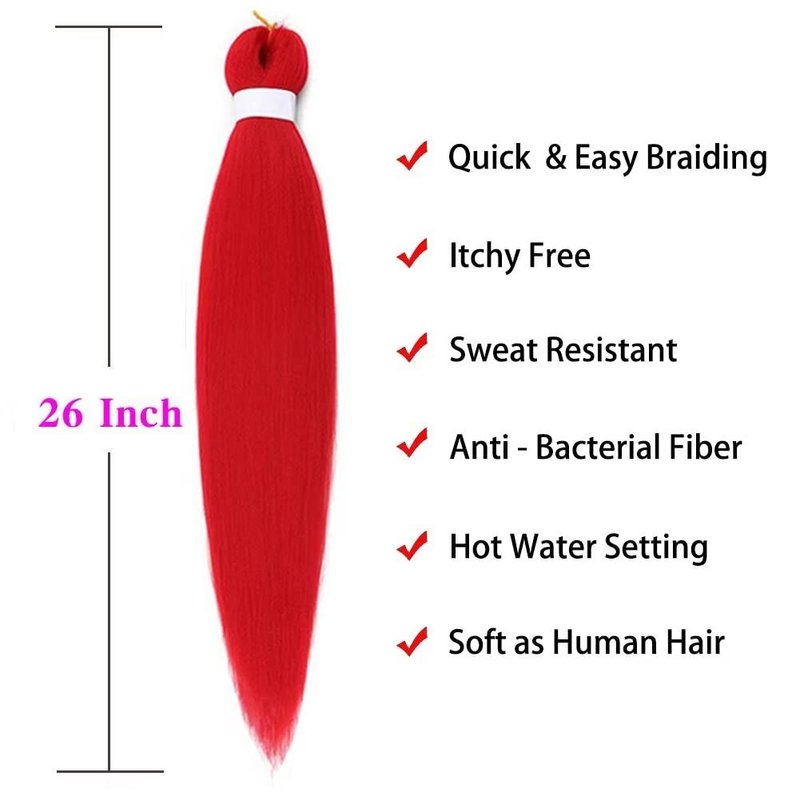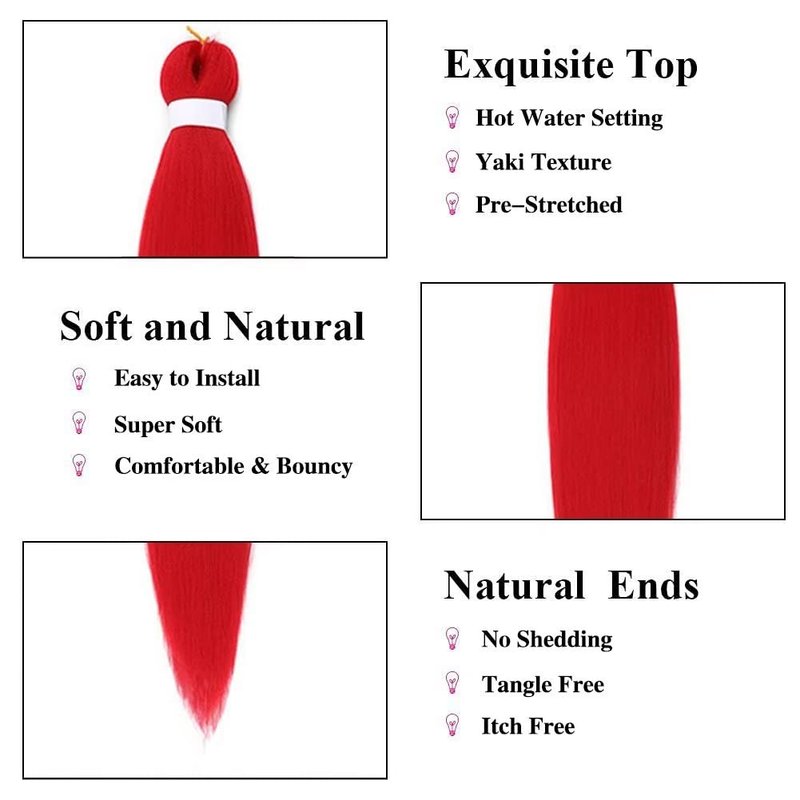 - π Red Pre Stretched Braiding Hair didn't cause Discomfort to Your Scalp. No vinegar dipping process needed and save your time. Lasting freshness without skin Irritation.