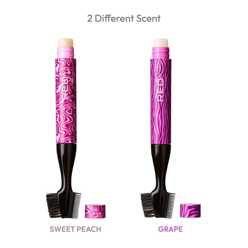 Red by Kiss Edge Brush with Edge Fixer Wax 3 in 1 Edge Control Styler, Boar Bristle Brush, Purple, for Women Styling