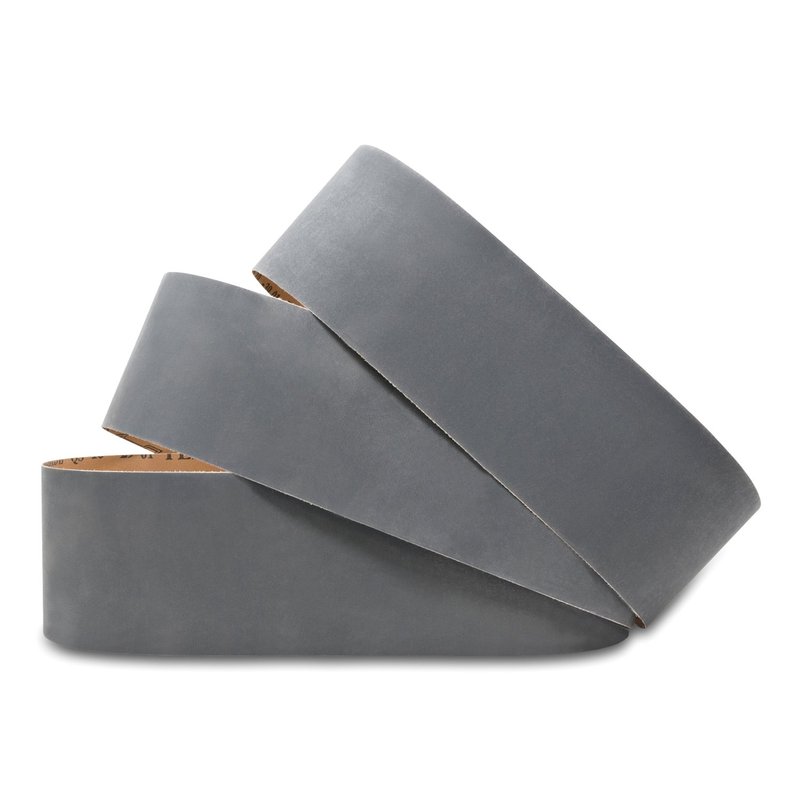 4" X 36" 220 Grit Premium Silicon Carbide Sanding Belts (narrow Belt). 3-Pk. Silicon Carbide (S/C), closed coat, heavy duty Y weight polyester cloth backing. High quality and long lasting industrial abrasive sanding belts provide a sharp and long lasting cut on glass, stone, granite, composites, wood, plastics and metal. Heavy duty Y-wgt material provides extra strength for working with grinding and smoothing applications, Resin over resin bonding. Bi-directional tape joint. Wet or Dry applications. Assembled in America.
