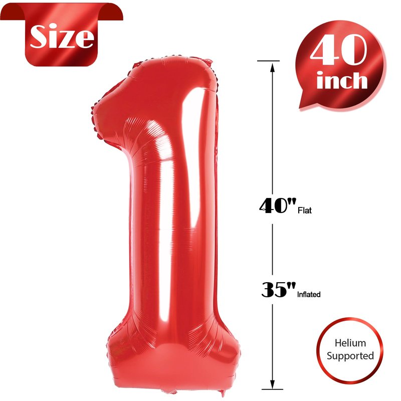 - 【Make a Statement with 40-Inch Number Balloons】Elevate your birthday bash with our red 40-inch number balloons. Not only do they create a vibrant backdrop for photos, but the red 1 balloon first birthday also serve as fun props, guaranteeing your party's style and memorability. Add some sparkle with our stunning red 1 balloon number and make your loved one’s special day truly unforgettable!
