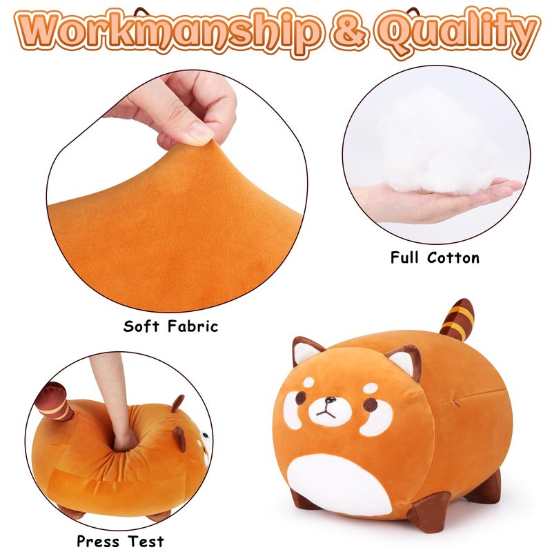 - 🌈【Safety, Softness & Durability Material 】Our red panda plush toy is crafted from stretchy super soft fabric filled with with plump pp cotton, which is softer than ordinary, skin-friendly fabrics give you better skin touch feeling. not easy to deform, delicate feel. Our fabrics of this racoon plushies have passed CPSIA certification, ensuring safety and durability. Besides, our meticulous stitching process enhances this kawaii racoon plushie toy's durability and prevents loose threads.