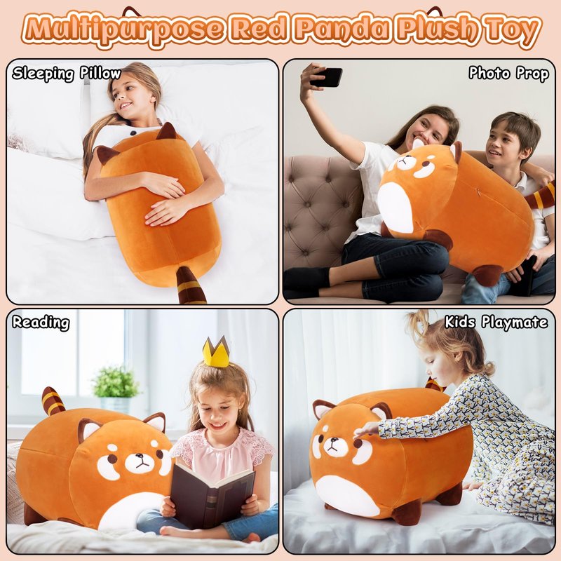 - 🎁【Perfect Gift】The kawaii cuddly red panda stuffed measures 15.8", no one can refuse this a delightful present. Embracing this red panda stuffed animal helps melt away all bad moods and work stress! It can be used for kids' birthdays, Halloween, Christmas, Valentine's Day, Thanksgiving. It will bring good luck to your family and friends! Why not choose this cute plush to express your concern for your girlfriend, child or friend. your friends, family, and loved ones will love it very much!