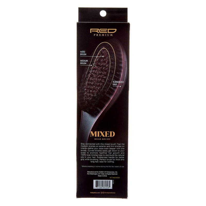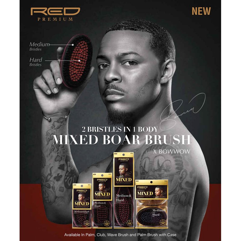 Red Premium X Bow Wow Medium Hard Hair Brush for Men 360 Wave Brush 2 Bristles In 1 Mixed Boar Brush (Wave Brush)