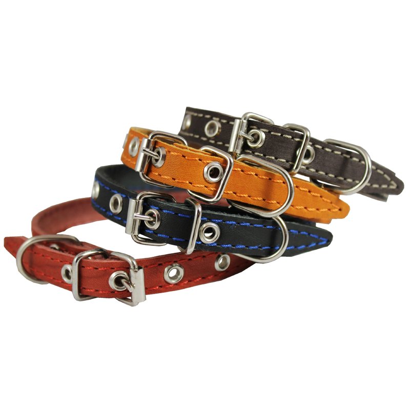 Made of double layers genuine leather this trimmed with contrast color thread dog collar can be used for all kinds of activities like walking, training. 1/2" wide, very comfortable and durable. Ideal collar for daily use.
