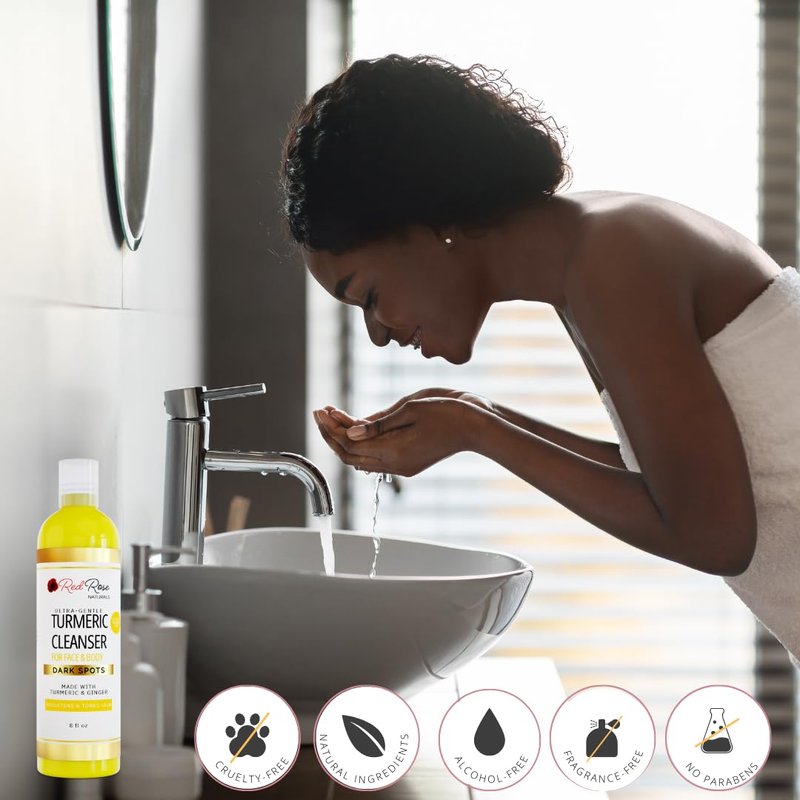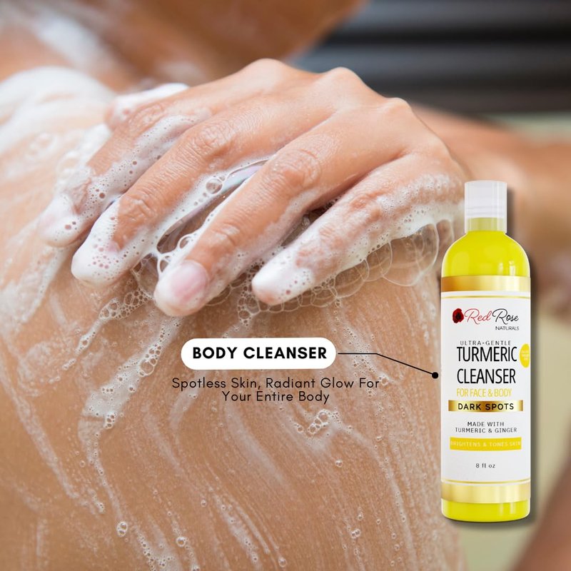 - Lemon Scent: Red Rose Naturals Turmeric Cleansing Face & Body Wash gives your skin a deep but gentle clean. Formulated with the most premium ingredients, this facial cleanser awakens the skin with a lemon scent and energizing lather.