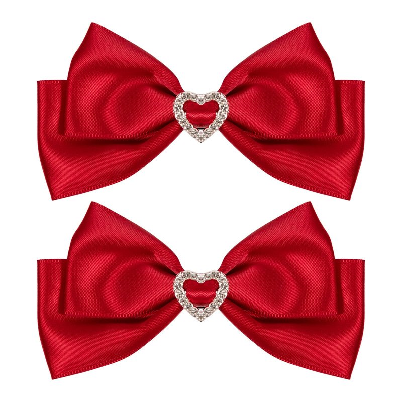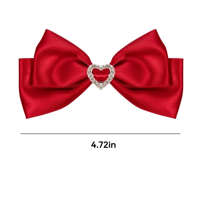 Red Satin Hair Bow Clips, Christmas Valentine School Hairpins with Heart Rhinestones,Handmade Bowknot Hair Accessories for Kids Girls New Year Decor