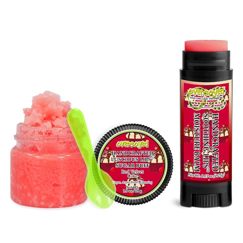 Red Velvet Cake Soothing & Luscious Lips by OverSoyed Exfoliator & Chapped Lip Repair Lip Care Combo | Artisan Handcrafted to Order Moist Chocolate Cake Vanilla Sugary Frosting Flavored Exfoliating Sugar Lip Scrub & Lip Moisturizer Balm Gift Set