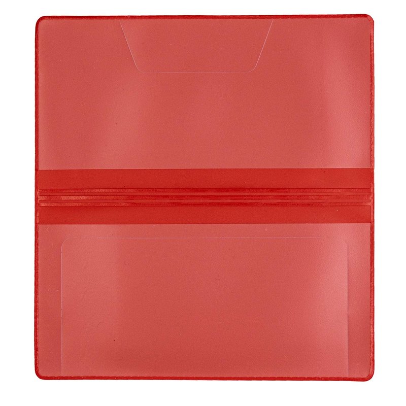 Each red vinyl checkbook cover order includes one vinyl cover featuring a duplicate flap built-in and an additional slot to store a transaction register. This red vinyl checkbook cover is PROP 65 compliant.