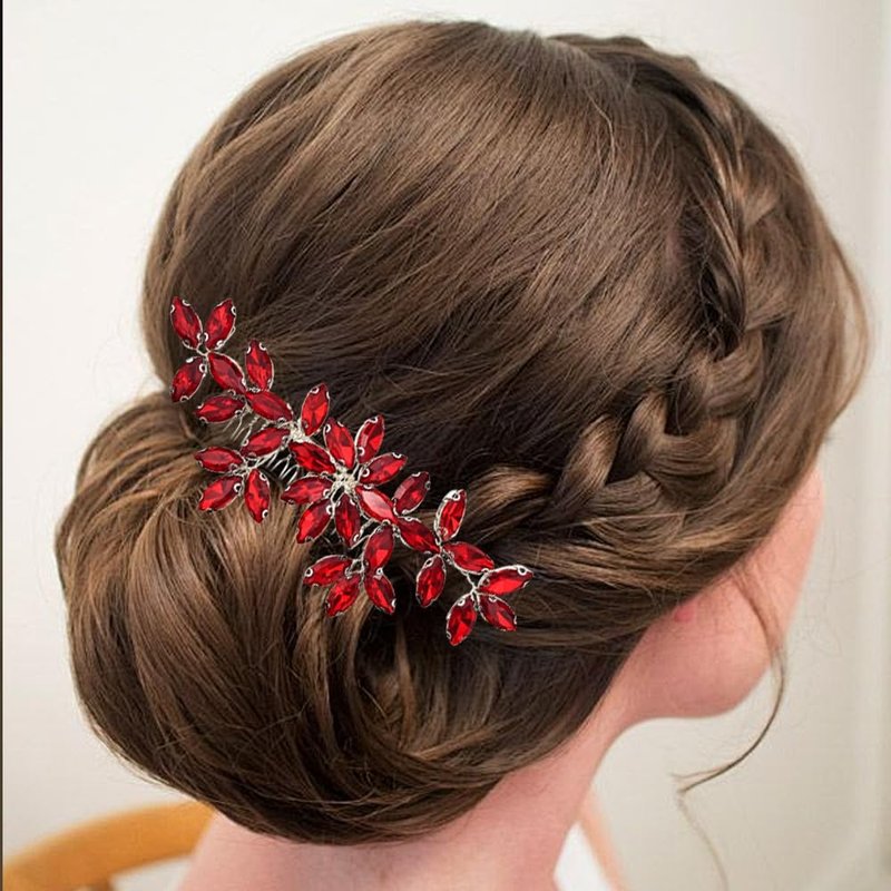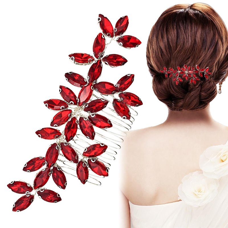 Red Wedding Crystal Hair Comb Elegant Bridal Wedding Hair Piece Teardrop Crystal Rhinestone Hair Accessories for Women Prom Party Photography