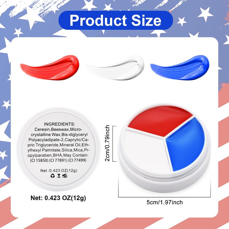 - Healthy & Safe Ingredients - The Red White Blue Face Body Paint is carefully formulated using high-quality, non-toxic, and skin-friendly ingredients, ensuring a safe and gentle application on your face and body. You can confidently express your patriotism without worrying about any harmful effects on your skin.