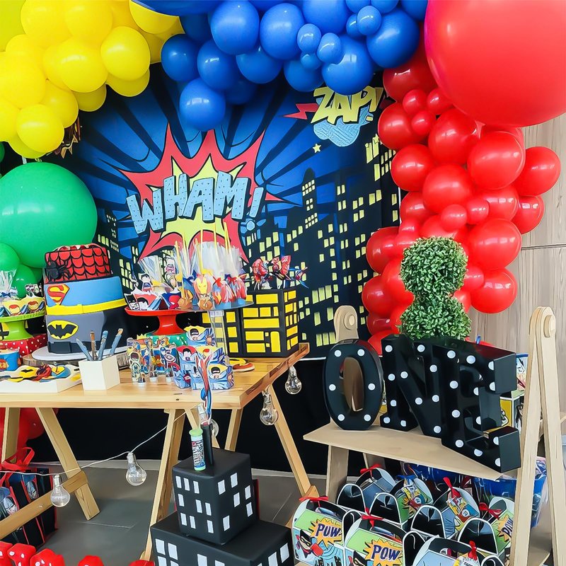 - 【Easy Assembly】Making an impressive balloon garland is a breeze. Simply inflate the balloons to different sizes and easily secure them to the included arched balloon strips using the provided adhesive strips. Mix and match for a truly unique superhero themed party decor.