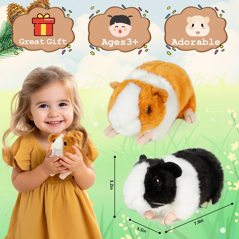- Realistic Stuffed Animals: Come with 2 guinea pigs of different colors so they can live together and keep each other company and not be lonely!