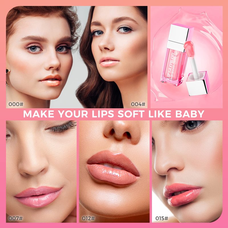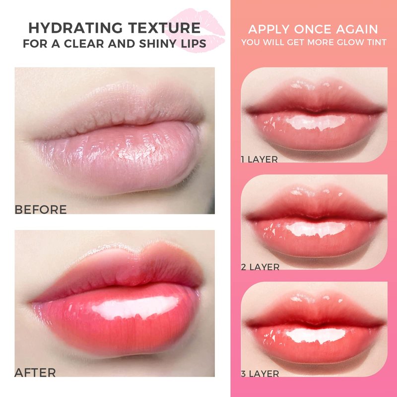 - 【HYDRATING LIP GLOW OIL】The clear lip gloss lip oil is made with Cherry Seed Oil, Raspberry Extracts and Luffa Cylindrica Seed Oil, which can effectively lock in the lip moisture, and keep your lips lustrous and hydrated at all times. This lip oil nourishes and lightens the lip line, makes the lip more glossy and elastic, leaving your lips soft as a baby.