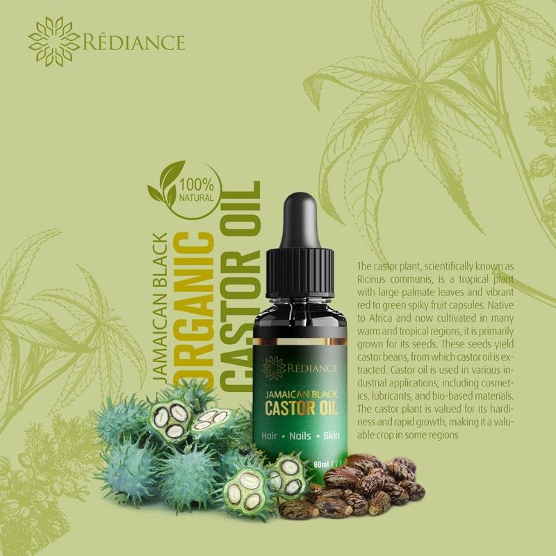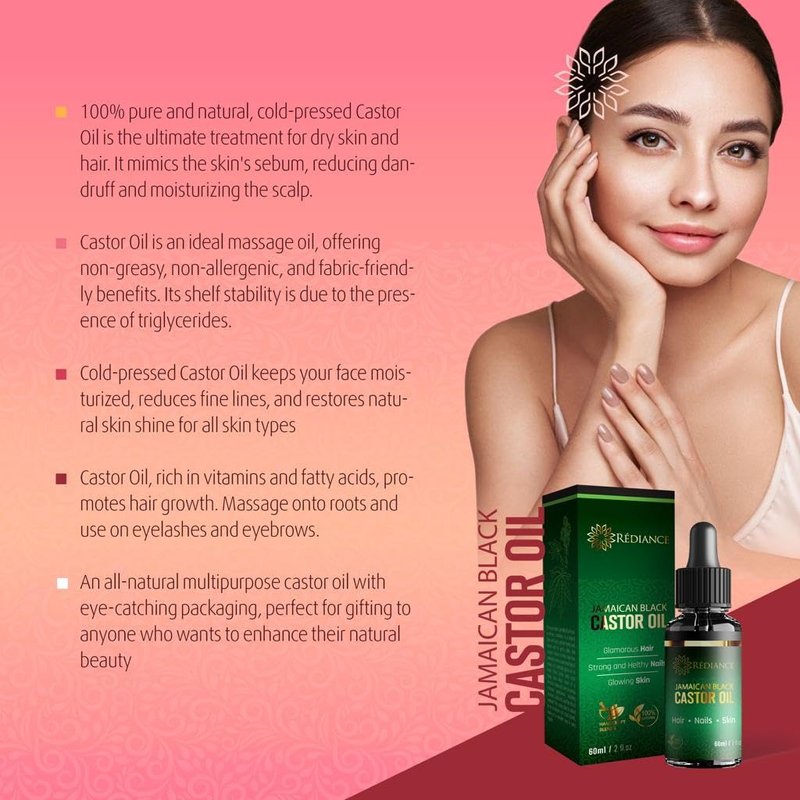 Rédiance 100% Pure Jamaican Black Castor Oil – Cold-Pressed Organic Oil for Hair Growth | Skin Moisturizer | Nail Care |Strengthens and Hydrates for Healthy Hair & Glowing Skin – 60ml