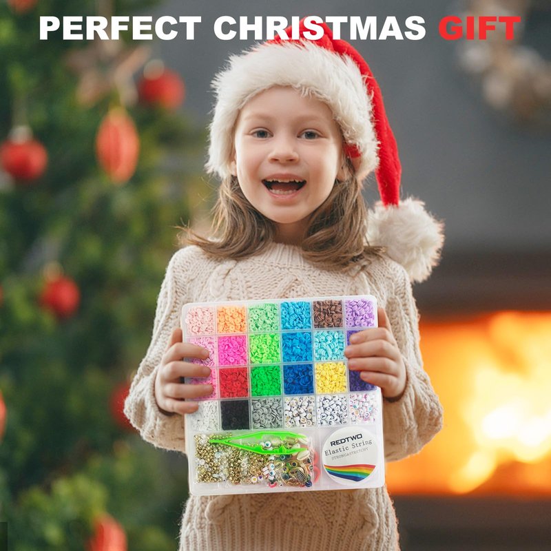 Redtwo 6200 Pcs Clay Beads Bracelet Making Kit, Flat Round Polymer Heishi Friendship Bracelet Jewelry Kit with Charms and Elastic Strings for Girls 8-12 Gifts for Kids