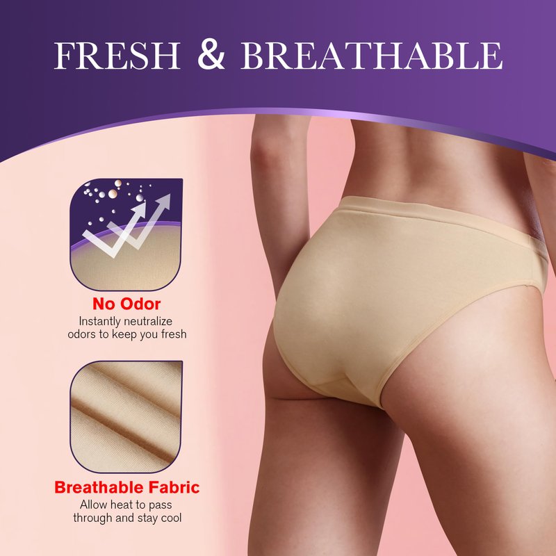 REELINDRY Washable Incontinence Underwear for Women Absorbency Panties Leak Proof Postpartum Bikini Bladder Control Briefs 1 Pack (Beige, M)